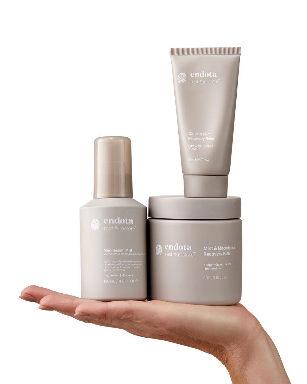 Nurture your body to its full potential with the soothing, restorative properties of some of our best-selling Rest & Restore products. Including Clove & Mint Recovery Balm, Magnesium Mist, and Mint & Macadamia Recovery Bath in a convenient sustainable travel bag to ensure you’ve got the healing powers of nature with you whenever your body needs them.